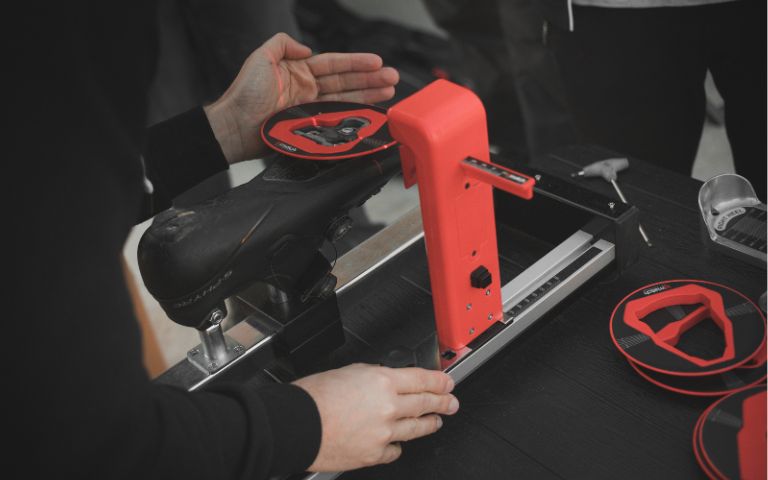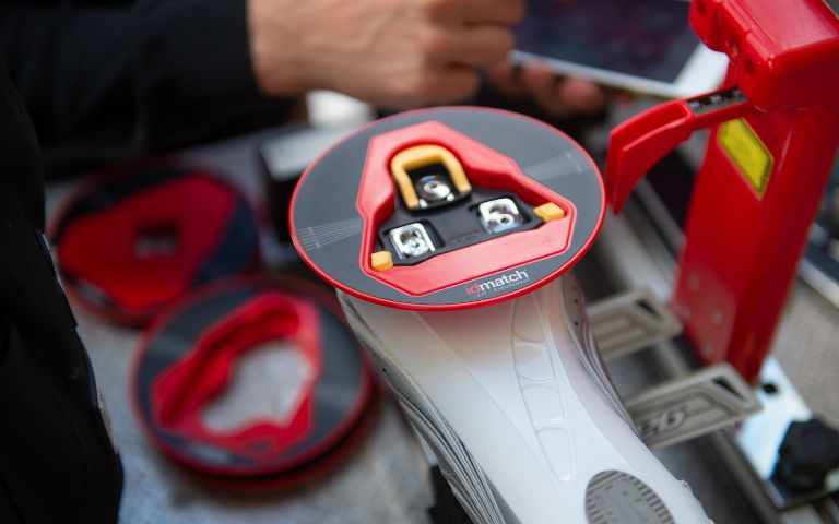 idmatch Cleat Fit is the first system that allows the measurements taken on the foot to be transferred directly to the sole of the shoe. Aligning the cleat with the pedal axis will be simple and extremely precise. Thanks to a laser beam and a goniometric disc, the position and orientation of the cleat will be perfect.